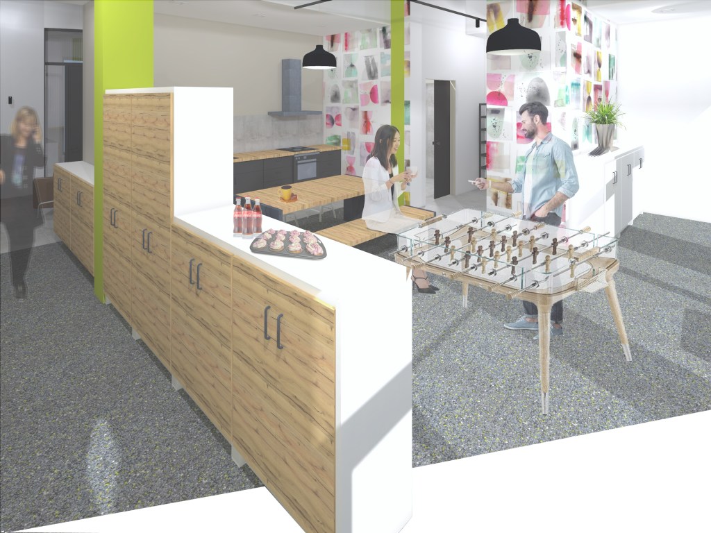 HEC Projektbeschreibung: Innenausbau Bürofläche Status: in Ausführung Nutzfläche: 205 m² Renderings: Freihöfer architecture sàrl
